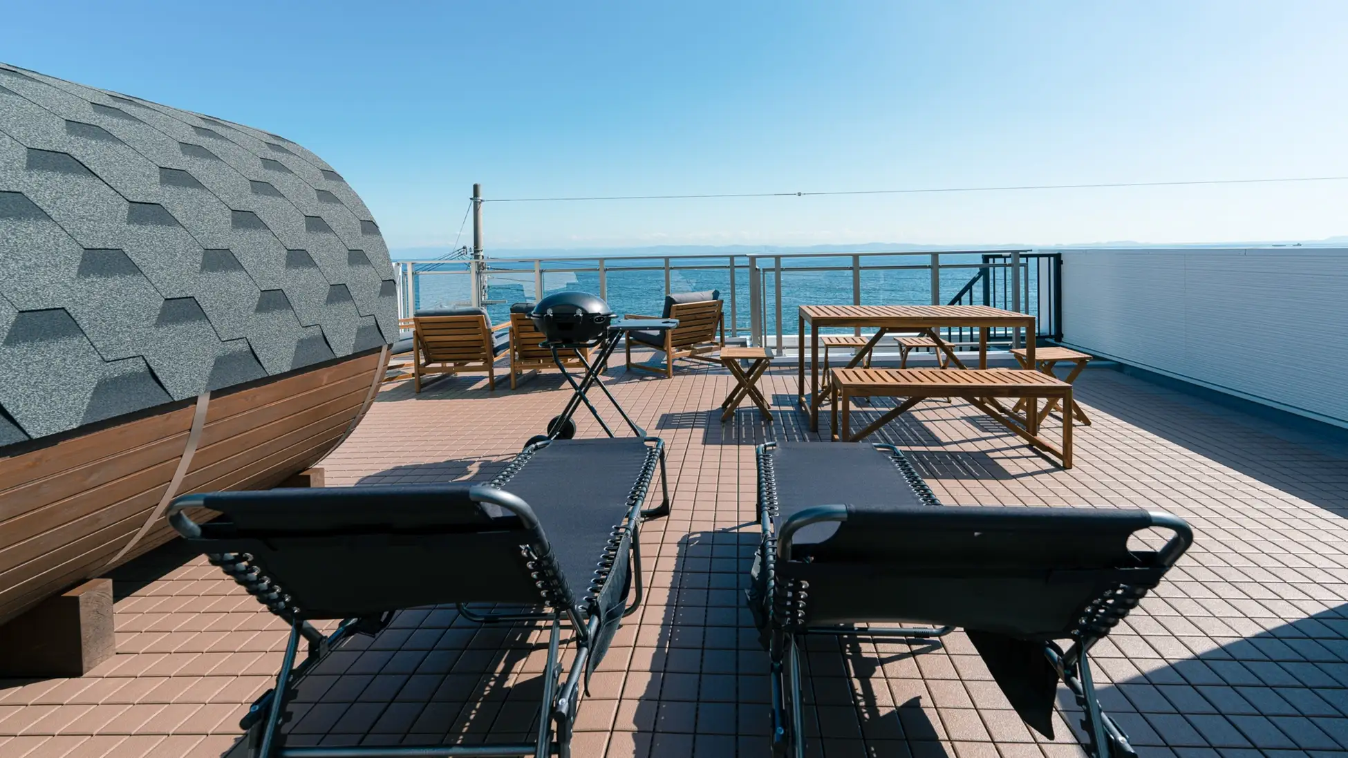 特徴:白亜のヴィラ、ルーフトップテラス、サウナ・水風呂